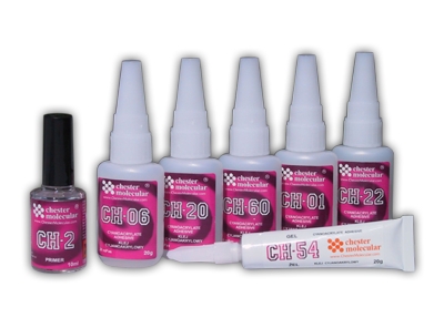 - szeroki asortyment łączonych materiałów: guma, kauczuk, elastomery, skóra, polimery z użyciem aktywatora Chester Primer CH-2, guma silikonowa z użyciem aktywatora Chester Primer CH-2, metale, drewno, szkło, ceramika, tkaniny